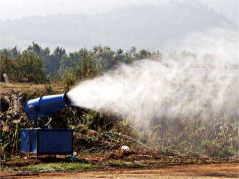 高效降溫:霧炮機(jī)能夠產(chǎn)生大量的微小霧滴,這些霧滴在空氣中迅速蒸發(fā),吸收大量熱量,從而達(dá)到快速降溫的效果。據(jù)研究,霧炮機(jī)可以在短時間內(nèi)使環(huán)境溫度降低數(shù)攝氏度至十幾攝氏度。